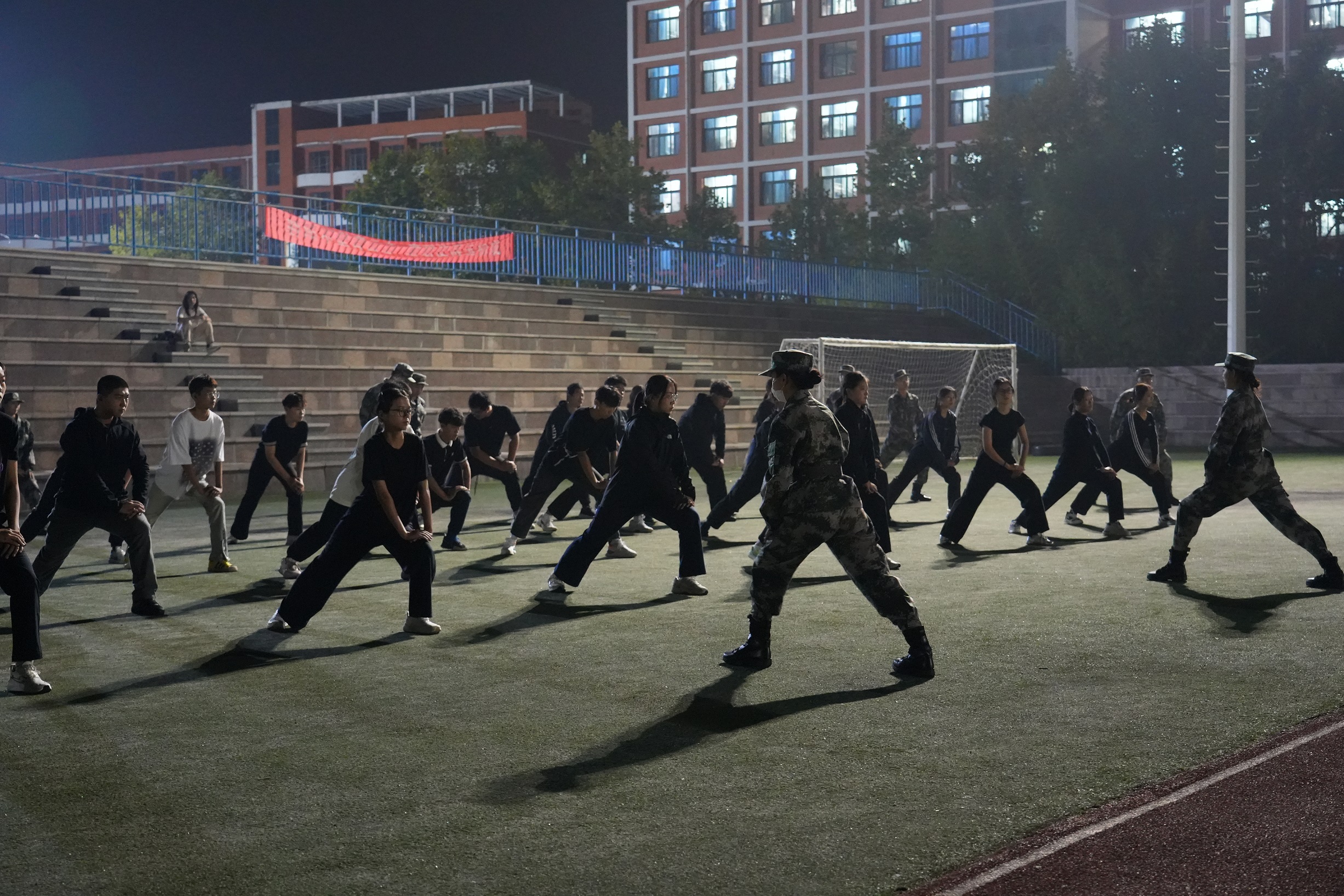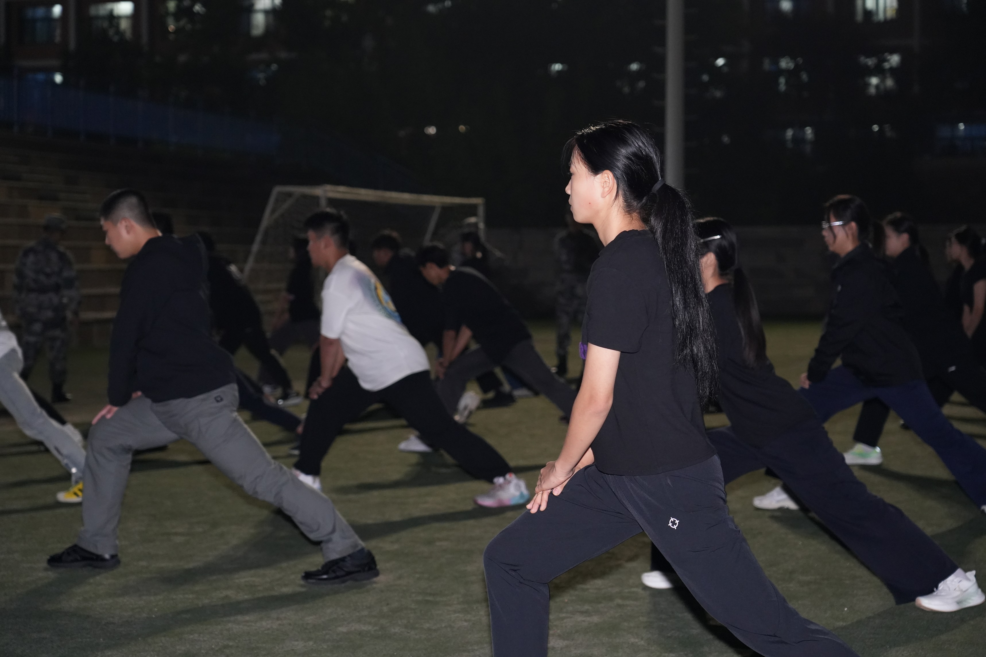 暮色四合,华灯初上,操场灯光在夜色中晕开一片温暖。一群身着整齐制服的年轻人已列队集结——他们是哈尔滨理工大学(威海)大学生国旗护卫队的成员,在月光与灯光的交织中,开启一夜又一夜的常规训练。