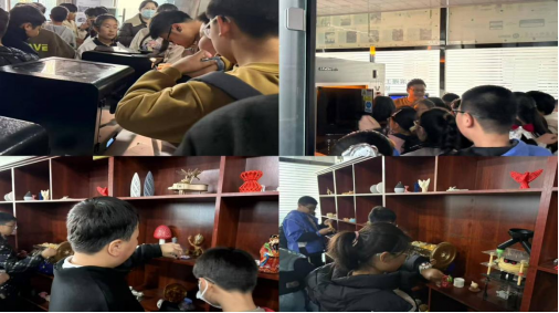 离开书香四溢的图书馆,孩子们来到了充满现代科技感的3D打印实验室。3D打印作品抓住了每个人的目光。一个个精巧的模型在打印机喷头的精准移动下逐渐成型,看到最终放置在展柜里的作品,孩子们不时发出阵阵惊叹。支教团携手专业人员用生动易懂的语言,将复杂的科技原理娓娓道来,在孩子们心中播下了探索与创新的种子。