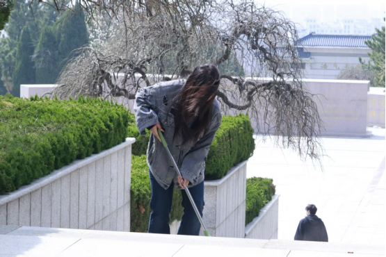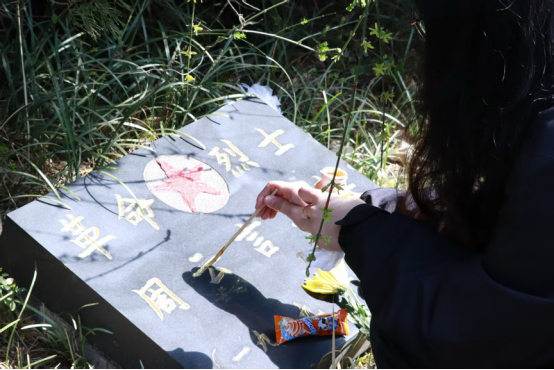 随后,学子们化身志愿守护者,开展陵园清扫与墓碑描金志愿服务活动。大家分工协作,手持扫帚、抹布等工具,认真清扫陵园步道、擦拭墓碑灰尘、清理周边杂草,细心呵护英烈安息之地,以实际行动守护红色阵地。针对陵园内字迹略显淡化的烈士墓碑,学子们小心翼翼地用描金漆为碑文重新上色,一笔一划勾勒墓碑上的英烈姓名与事迹,让金色字迹重新熠熠生辉,每一次落笔都饱含敬意,既是对英烈事迹的铭记,更是对革命精神的传承。