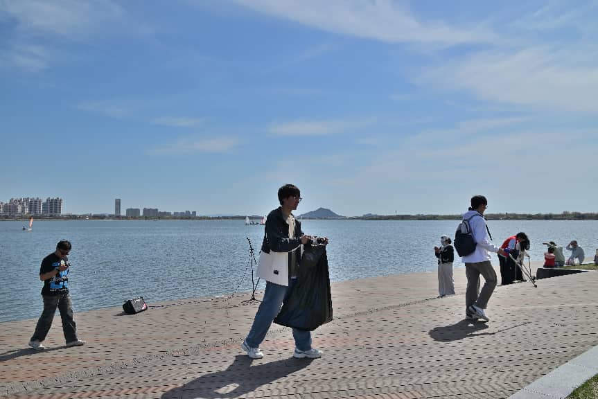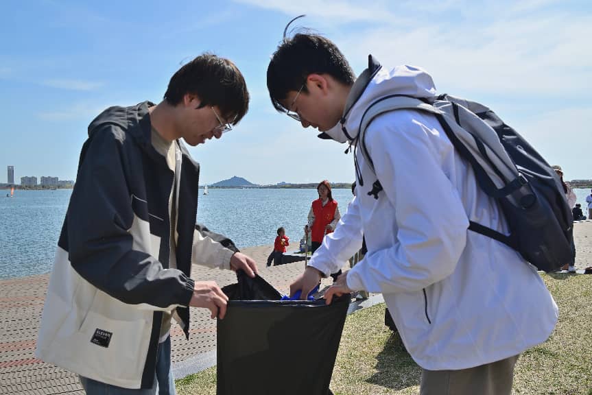 赛事有终点,环保无止境。哈理工百名志愿者以赛后净滩的实际行动,快速复原赛道环境、降低生态污染风险,带动更多市民关注海洋保护、践行文明理念,彰显高校服务地方、奉献社会的责任担当。