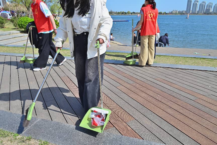 清洁之余,志愿者们同步承担环境维护、文明劝导、秩序引导工作,对观赛遗留物品进行归整清理,耐心劝导市民爱护环境、不随意丢弃垃圾,主动为市民提供咨询指引服务。