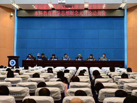 会上,校党委书记赵国刚以“生存与兴衰——我们共同面对的大问题”为题目,强调了三点意见。他指出,按照党代会的要求,党委和行政决定在全校开展一次本科教育教学思想观念的大讨论,目的是唱响一个主旋律——教学决定生存,质量决定兴衰;实现三个聚焦——聚焦本科教育,聚焦转型发展,聚焦一流本科建设;达到四个树立——树立人才培养为根本,以本科教育为基的办学理念;树立转型发展,需求导向的发展观念;树立学生全面发展的育人理念;树立科学质量观的教育理念。