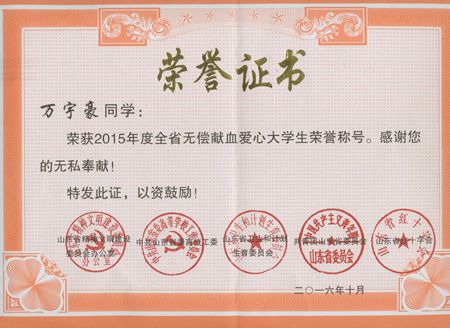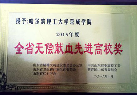 11月4日,由山东省文明办、省高校工委、团省委、省卫计委、省红十字会、联合主办的山东省高校无偿献血工作表彰大会在山东师范大学召开,相关领导和全省97所高校代表参加了会议。多年的无偿献血工作得到了社会的高度认可,学院在全省高校中脱颖而出,被评为2015年度全省无偿献血先进高校。