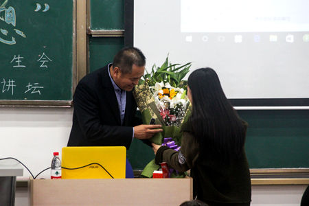 讲座现场座无虚席,袁惠军总经理做了以“科技改变世界”为主题的精彩演讲。讲座中,袁惠军总经理首先围绕城市的起源和发展沿革(农业城市-工业城市-信息城市-数字城市-智慧城市),智慧城市的缘起、概念、框架、核心技术、发展现状以及荣成市智慧城市发展状况等方面进行了深度的剖析。随后,袁惠军总经理就“当代大学生应当树立正确的人生观、价值观、世界观”、“大学生如何经营自己的人生道路”等话题发表了观点。袁总经理学识渊博、阅历丰富、崇尚经典,他以质朴亲切的语言、风趣的谈吐感染了现场观众。袁总经理鼓励大学生,要正确认识自己的人生价值,做对社会有贡献的人;要深刻理解“知行统一,博厚悠远”八字校训的意义内涵;做好目标规划,放慢脚步,从眼下做起,多读哲学经典、多积累人生经验,做真人、做靠谱的人,进一步达到更好地经营自己的目的。现场提问环节,同学们踊跃发言,问题独到,袁惠军总经理一一进行了解答。最后,袁总经理与到场嘉宾合影留念。