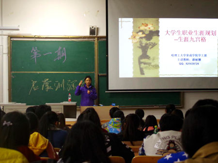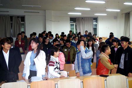 谢老师首先从大学生的学业规划问题入手,提出了大学生在四年期间应完成的三个基本任务。她提醒大家:大学生正处于人生的建立阶段,规划的好坏决定自己未来的事业和生活。谢老师结合身边实例,以九宫格形式将大学期间的成长分为学习进修、职业发展、人际交往、个人情感、身心健康、休闲娱乐、财务管理、家庭生活和服务社会。在讲解、启发与互动的交替之下,使同学们更加清晰了大学四年应该怎么过得更有目标、更具自主性。活动过程中,在场同学两人一组就老师所给的问题进行讨论并踊跃地分享,将现场气氛推向了高潮。在谈到家庭生活时,谢老师强调要加强和改善与父母之间的关系,并带领同学们进行了一次冥想,在音乐的围绕下,让大家去体会父母的感受,学着站在父母的角度理解他们,并在此基础上获得身心的力量。活动最后,大家在调查问卷上写下了自己的收获和建议。至此,第一期大学生职业生涯启蒙训练营圆满结束。