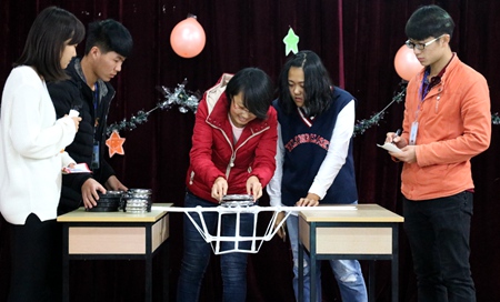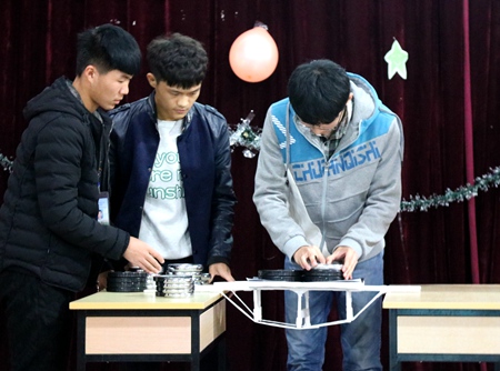 经过初赛的角逐,共有15支队伍脱颖而出进入决赛。决赛共设两个环节,第一环节由每支参赛队伍派出一名代表对其作品进行PPT演示讲解,简单的讲解让观众大体了解了各队纸桥的构造和承重原理;第二环节是纸桥的承重测试,通过增加负重来检验纸桥的承重,现场的每一个人都屏息凝神,每加载一块砝码都牵动队员和观众们的心。15支参赛队伍经过激烈的比拼,最终产生了一等奖、二等奖、三等奖、优秀奖、最佳设计奖五个获奖队伍,一等奖由建筑工程系“传奇502”战队获得,砝码承重为73斤,创造了纸桥比赛历年来的最好成绩。活动的最后,建筑工程系主任吴知丰对本次活动进行了精彩的专业点评,并由在场嘉宾为获奖者颁奖。