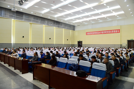 本次报告会邀请到吉林大学教务处处长胡亮教授,为我校干部教师开展一场精彩的专题报告,胡亮教授以《顶层设计 深层推进 加快本科教学创新发展》为题,结合吉林大学的本科教育教学改革的具体情况,从对建设一流本科教育的几点反思,宏观谋划、顶层设计、确立本科教学改革策略,深层推进、内涵发展、推进本科教学改革创新三个方面系统地阐述了本科教学改革的创新思路与策略。他指出,本科教育是高水平研究生教育和一流师资的基础,处于大学教育的基础和中心地位。大学的根本任务是人才培养,为学生提供最好的教育是大学的核心目标。大学应该结合 “双一流”建设目标和“十三五”本科人才培养改革规划,固守大学之本、坚持育人为本,切实推进“双一流”建设,真正实现从“跟跑者”“并行者”向未来“领跑者”的转变。胡教授认为,大学教育应以提高人才培养质量为核心,找准本科教学改革的着眼点,从宏观谋划方面加强顶层设计,确立本科教学改革建设的着力点,努力构建具有鲜明特色的本科创新人才培养体系,造就一大批“志高远、敢担当、基础厚、能力强、会创新、适应广”的高素质创新型人才。针对推进本科教学改革创新,胡教授结合吉林大学的教育教学改革情况,列举了十项关于本科教学改革和建设的计划,包括教学过程中实施“一制三化”(导师制、小班化、个性化、国际化)、实施本科生“创新实践人人行”计划、实施精品在线课程建设与混合式教学改革计划、实施本科生联合培养与海外研修计划、实施本科生海外优质课程引进计划等,强调高校要加强内涵建设,助推学校人才培养实现新一轮跨越式发展,为努力构建创新型人才培养模式,造就一批高素质创新型人才奠定良好基础。