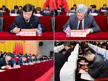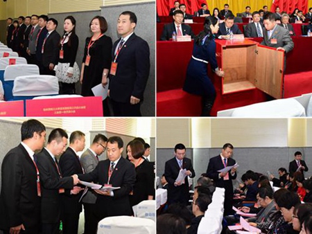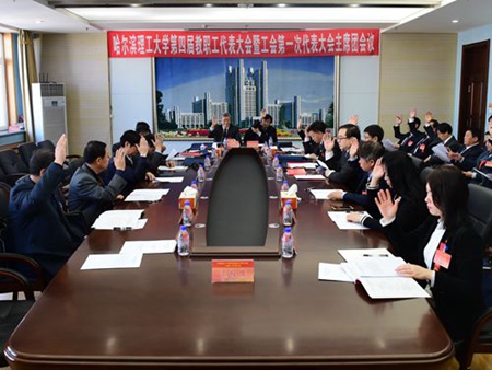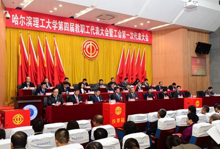 会议召开前,在教学主楼五楼报告厅进行了大会选举。通过了哈尔滨理工大学第四届教职工代表大会暨工会第一次代表大会选举办法(草案);通过了大会总监票人、监票人建议名单;正式选举了哈尔滨理工大学第四届教代会执行委员会委员、第一届工会委员会委员和第一届工会经费审查委员会委员。