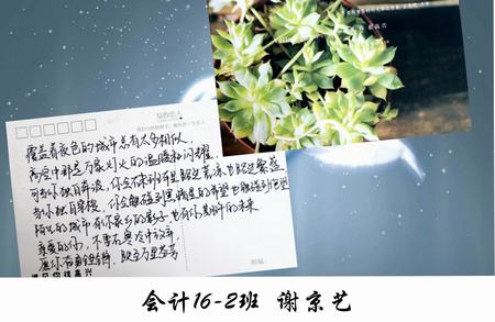 一张明信片,寄载哝哝细语;一个故事,诉说款款深情。文字让我们回归本初,以一种原始的方式去抒发内心的真实情感,体验一张明信片带来的感动与惊喜。本次大赛不仅锻炼了同学们表达能力,而且让我们重新发现了文字的美,诠释心底最真实的情感,感悟生命中的美好。