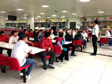 为增强饮食中心全体员工的消防安全意识,让员工都具备基本的消防安全常识、掌握基本的防范和应急措施,12月26日下午13时,学院饮食中心特邀威海市安防安监的徐教官开展消防安全知识培训。饮食中心全体员工到场参加培训。