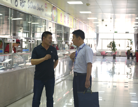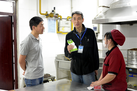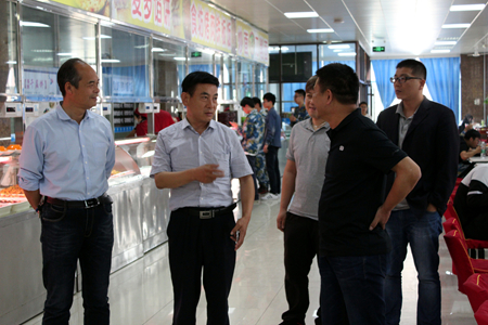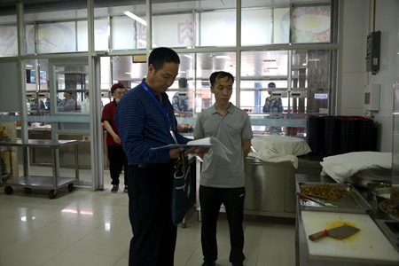 为总结2016-2017年度饮食工作成果,表彰一批高校示范餐厅,提升山东各高校饮食管理服务水平,5月11日下午,在山东大学后勤保障部党委书记刘学祥带领下,山东省高校伙食专业委员会专家组一行14人来院评选山东省高校示范餐厅。学院党委书记端木永东,饮食中心主任朱安良以及工作人员陪同检查。