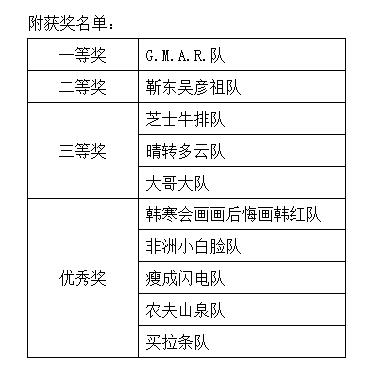 经过初赛的一路“拼杀”,十组队伍过关斩将进入决赛。决赛共设三个环节,实行淘汰晋级制。第一环节为小组对抗赛,两组选手进行PK,比赛过程中,两名竞争对手根据另一人对成语大意的概括进行抢答,一人话语刚落另一人的答案已脱口而出,真可谓心有灵犀一点通,令人赞叹不已。随后,热辣的舞蹈缓解了紧张的比赛氛围,将大家带入到了第二环节。晋级的五组队伍在第二环节中依次上场,在有限时间内看图猜成语,选手答题之快速,板书之准确,赢得观众的阵阵叫好。最后的冠亚之争是飞花传令,在本环节中,“G.M.A.R”队与“靳东吴彦祖”队向同学们展现了他们扎实的成语功底,依据嘉宾老师选定的五个汉字,两组队伍列举出与之有关的四字成语,你来我往,可谓是各有千秋。经过三轮激烈的角逐,最终“G.M.A.R”队夺得冠军,决赛在轻快的吉他弹唱《颜色》中落下帷幕。最后,获奖队伍与嘉宾合影留念,活动圆满结束。