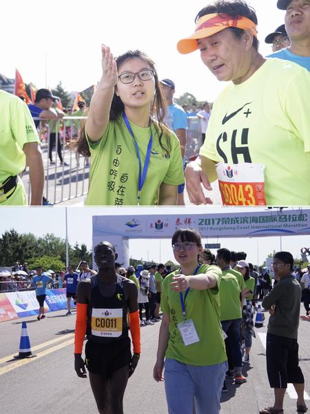 在本届马拉松比赛中,荣成学院选派737名大学生志愿者和3名教师志愿者参加,承担了本届比赛的主要志愿服务工作。志愿者们为大会提供物品分装与发放、芯片检测、计时系统服务、秩序引导、检录、医疗、翻译、计时点录像、赛事花絮摄影、存取衣物及场地器材物料管理运输等各项志愿服务。学院志愿者们积极参与,热情友好、体贴到位的志愿服务赢得了社会各界的好评。