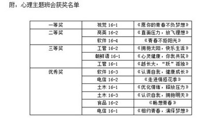 本次活动为班级的心理健康教育工作提供了互相学习借鉴的平台,进一步把心理健康主题班会做成了特色班会、精品班会,带动了大学生心理健康教育活动的开展,同时也真正让心理教育工作走进了班级。