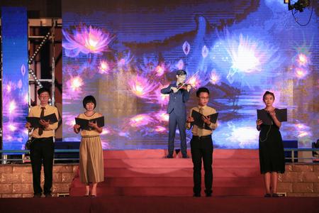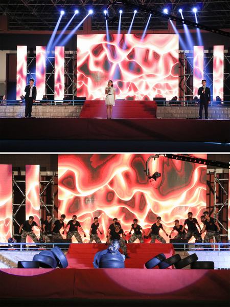 一曲优美的歌伴舞《芦花》正式拉开了本次晚会的序幕。晚会共分为回眸、感恩、启程三个篇章,尽情表达了毕业生们对大学生活的回忆和对未来的雄心壮志。第一段视频《我的大学生活》后,外教和同学联手献唱了歌曲《小幸运》,旋律中透露着毕业生们对四年生活的深切怀念,真实再现了同窗之间、师生之间的情深义重与不舍情谊;别具特色的寝室灯光秀更是为晚会增添了温馨、感人的氛围。随后,大学生民乐团带来了民族器乐合奏《千年风雅》、《花好月圆》,两首乐曲在展现中华民族传统文化的同时,也娓娓道出了对毕业生们的美好祝福。在共同欣赏过第二个视频《牵手》后,由佟彤、范立冰带来的歌伴舞《漂洋过海来看你》用抒情的歌词和优美的舞蹈再次表现了大学中的同窗情浓,师生情深。