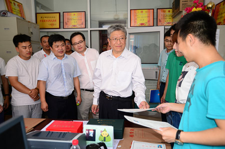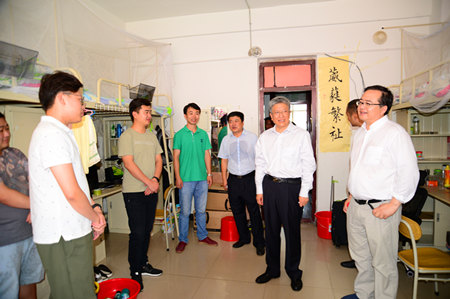 在学生12号公寓,李大勇校长参观了辅导员办公室并走进学生寝室。辅导员下寝室的举措能使学生工作第一线及时了解学生心理、思想和生活动态,让学生在“家”门口就能办理各项业务,实现管理育人与服务育人充分结合。公寓配备微波炉、急救箱、针线包、打气筒、工具箱等日常生活必需品,电子屏每天及时播报学校的各项重大新闻和通知,自习室和书吧提供全天候学习和笔记藏阅服务,公寓配备直饮水开水器,每个房间都安装的预付费电表。李大勇校长对学院打造学习型公寓、家园文化表示认可。