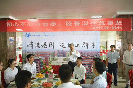 李大勇校长与毕业生代表一起吃“欢送饺子”