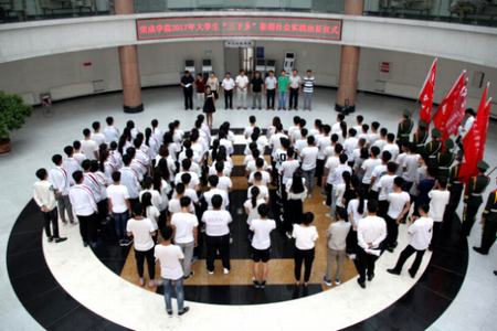 7月13日上午,2017年“三下乡”暑期社会实践出征仪式在图书馆一楼大厅顺利举行。组织人事部部长于全德,教务部部长赵轶,学生工作部部长黄浩宇,各系党支部书记,团队指导老师及社会实践团队成员参加本次出征仪式。大会由学生工作部副部长兼团委书记赵军主持。