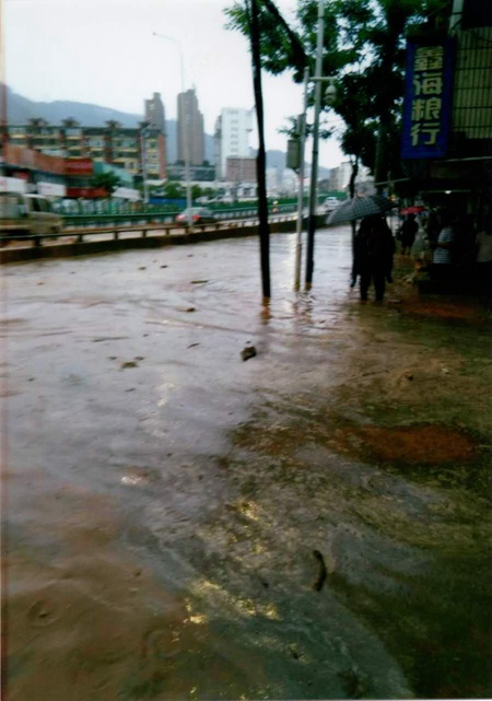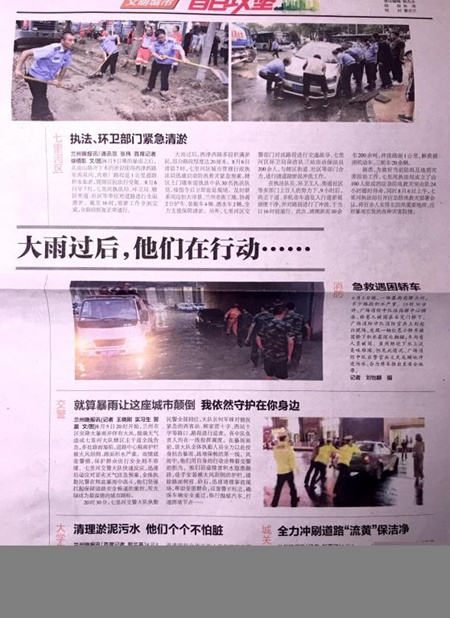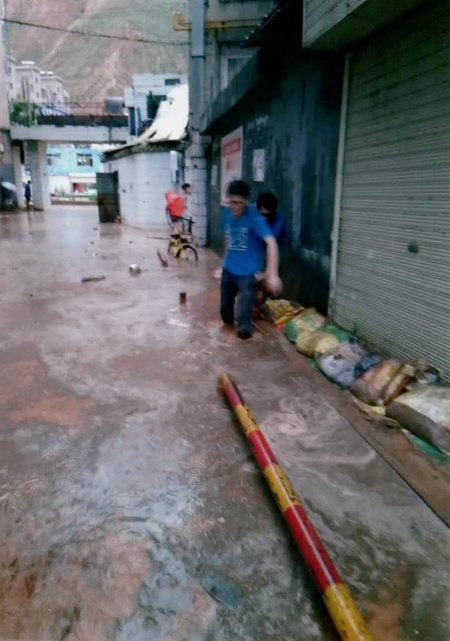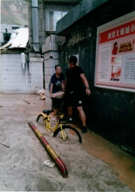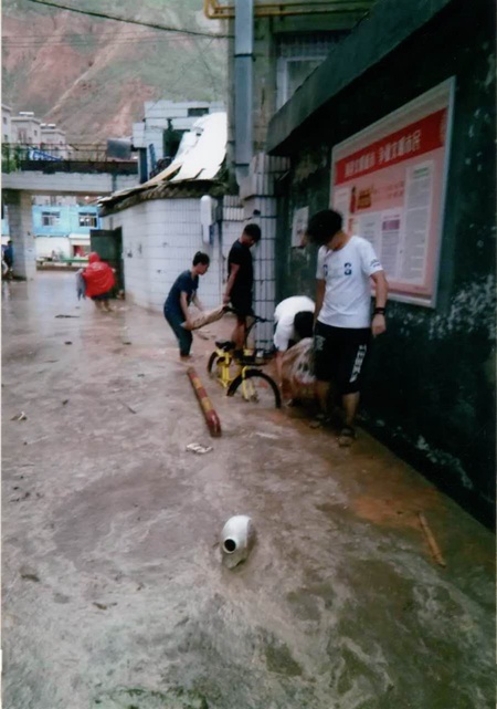 当笔者详细询问当时的情况时,李瑞思回忆:“那天是8月5日,白天一直是晴天,下午五六点的时候也根本看不出来要变天,后来我们结束工作准备回家的时候,雨就开始下了。开始谁也没有想到雨会下得那么大,后来是同学的爸爸出去检查,发现小区的入口不停涌进雨水。那个水很脏,因为小区靠近兰州市郊,水里有很多泥沙,还有被风挂断的树枝,都在不停地涌进来。这个时候同学的爸爸就喊我们赶紧过去帮忙,我们没多想都上去了。”