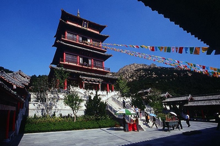 赤山风景区位于山东半岛最东端的中国首届魅力城市——荣成市,荣成市东南部的石岛海滨,三面环海,山海相连,海景壮观,山色秀美,与中国北方最大的渔港石岛港紧相毗邻,山、海、湖、港互为一位,与渔村、花村、画村等民俗村连点成线,是中国渔业第一大市。荣成市南部沿海的核心景区,以山海观光、生态休闲、海滨避暑、渔家民俗、佛教文化、国际交流而深受游客喜爱。景区占地12.8平方公里,森林覆盖率高达95%以上,气候冬暖夏凉,年平均气11.4℃,是空气中氧负离子浓度高达69028个/立方厘米的“天然氧吧”。 景区2005年被评为国家AAAA级旅游景区,为威海三大龙头景区之一,年接待游客100多万人次,是著名的“山岳文化和滨海休闲型旅游景区”,被誉为“山东省新兴旅游的精品景区和典型代表”和“国际友好文化交流胜地”,是与泰山、三孔齐名的韩国和日本游客来山东旅游的主要目的地。