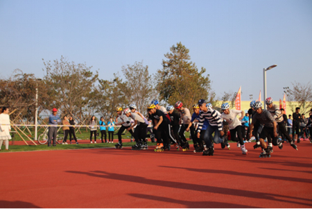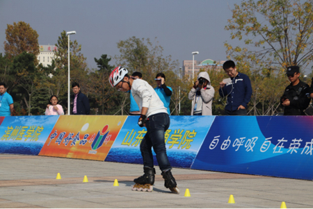 按照学院校园文化活动进社区、进百姓的工作思路,为丰富大学生课余文化生活、锻炼强健体质,加强烟威地区高校同学间的交流,10月28-29日,由荣成市体育局和哈尔滨理工大学荣成学院联合主办的“泰祥杯”2017年烟威地区大学生轮滑比赛在荣成市体育中心、樱花湖体育公园顺利开展。荣成市体育局局长张建波、副局长毕均芳,学院常务副院长杜野,学院学工部副部长兼团委书记赵军出席比赛开幕式。来自烟威地区13所高校的近百名运动员、教练、裁判员、轮滑爱好者和志愿者等赛事服务人员,共计300余人一同参与到了本次活动中。