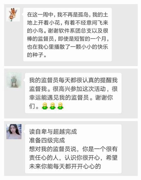 本次时间胶囊的成功举办,标志着软件工程系团总支第一次全线上社交活动的顺利运行,展现了软件工程系学子勇于探索、敢于创新的优秀品质,同时充分体现了活动的初衷与意义:学习的压力减少了同学之间的交流,个人的懒惰抑制了目标的达成,活动旨在帮助同学们明确贵在坚持,成在坚持,但不难在坚持的新理念,使同学们体验到坚持而有进展的成就感。
