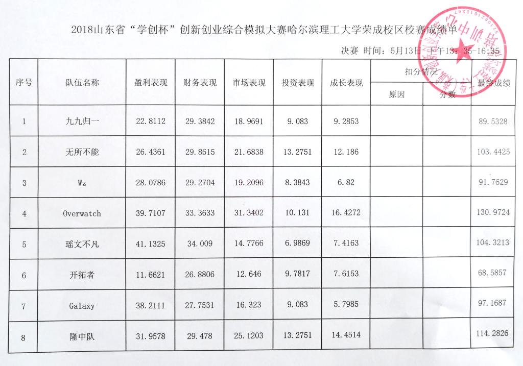 “学创杯”采用创业模拟经营软件作为竞赛平台,模拟初创企业团队分工、战略规划、市场研究、生产计划、研发投入、销售管理等工作,开展四个季度的企业运营。目前“学院杯”省赛参赛队伍训练选拔赛正在紧张进行中,双创学院采用8场个人赛+9场团队赛的方式,结合校赛成绩,最终将从8支校赛获奖队伍中决出3支队伍代表荣成校区参加山东省省赛。5月13日校赛结束后,进入决赛的8支团队全部参与训练,截止目前,累计举行训练赛12场,参加训练赛132人次,各团队的参赛热情和锲而不舍的精神为“学创杯”营造了良好的氛围。