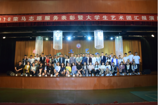 团委副书记隋明晓、学生工作办公室徐平老师、艺术系辅导员厉套老师为2018荣马优秀志愿者先进个人颁奖