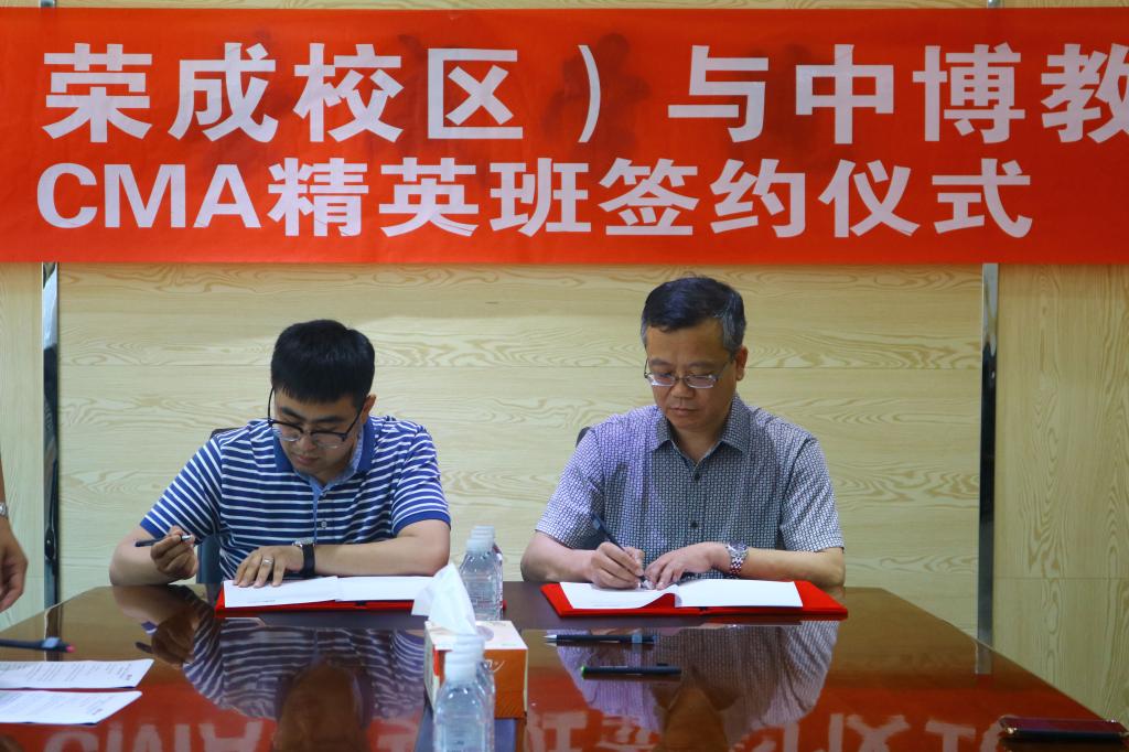 项目合作中,中博教育集团将给哈理工荣成学院的学生提供完整的CMA课程,同时也提供相关的注册、报考缴费等考试服务,以及后续的课后答疑等增值服务,对于符合标准的学员还会提供“中博奖学金”。
