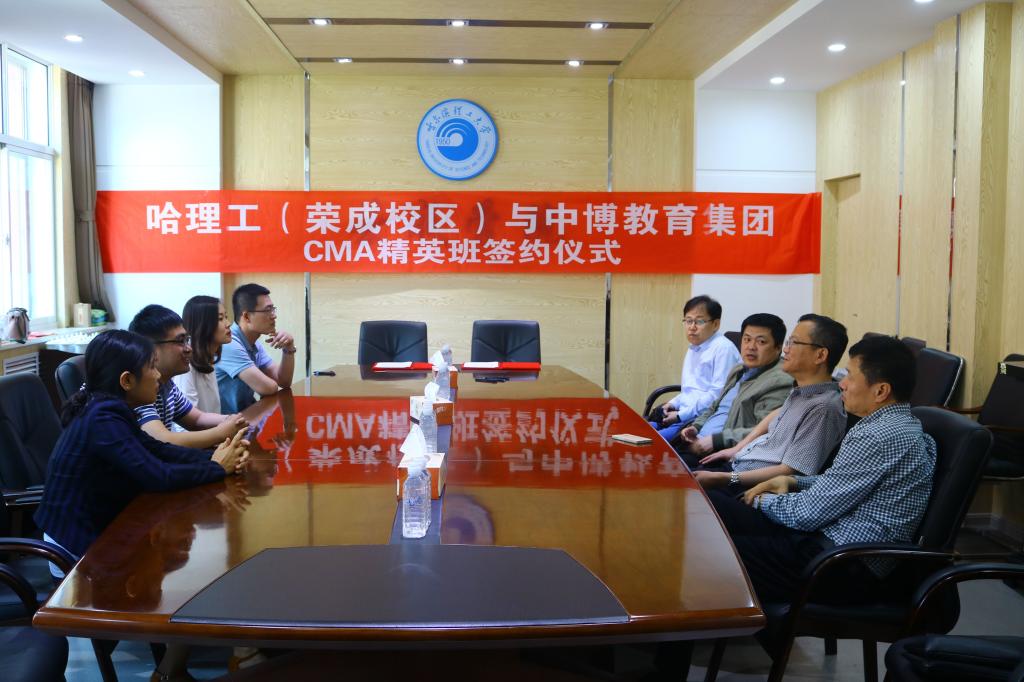 2018年5月30日上午,哈尔滨理工大学荣成学院与广州中博教育股份有限公司CMA精英班签约仪式,在哈尔滨理工大学荣成学院成功举行。