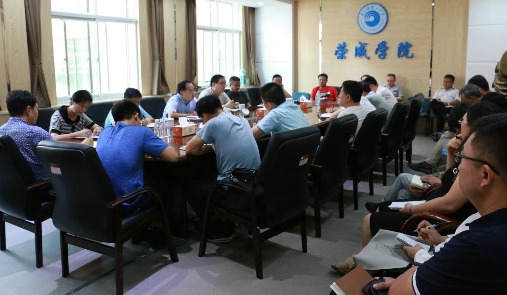 7月19-20日,学校副校长刘胜辉到荣成学院调研指导教学工作,调研期间,与学院班子成员,教学单位主任、分管教学工作副主任,教务办公室主任、副主任及相关职能部门部门负责人进行了座谈。座谈会由徐向晨院长主持。