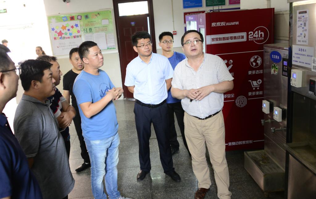 检查组查看宿舍学生净化水收费情况