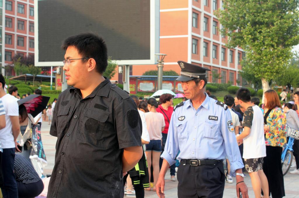 保卫办公室维护“跳蚤市场”秩序,进行现场巡逻