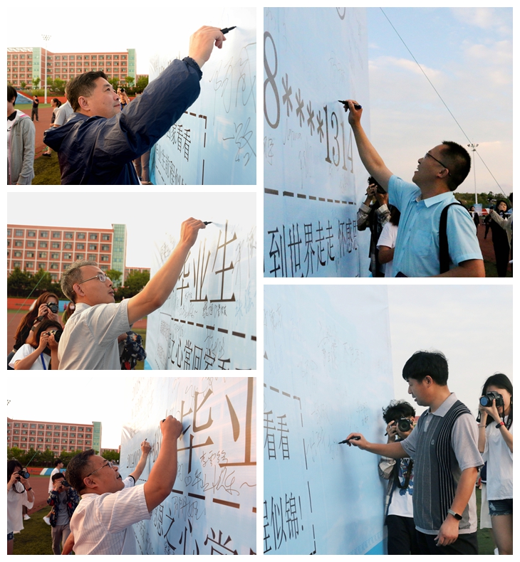 晚会前,学院领导、师生走红毯并在签名墙上签名、合影