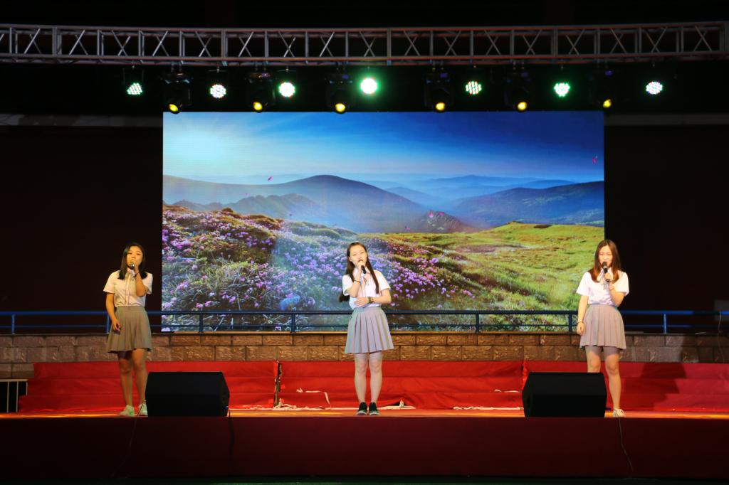 因为“感恩”,青春最动人。独具特色的《走秀理工》引入了“感恩”篇章,模特们曼妙的服装展示以及设计者创意的构思引得现场观众喝彩欢呼。在这热烈的气氛中,优秀毕业生代表及教师代表一一发言,毕业生们深切的表达了对母校和老师们的感激之情,教师们同样深情款款的抒发了对毕业生的殷切希望,深深触动现场观众的心灵。随后,外教老师和外语专业的同学共同献唱了一曲《追光者》,多国语言及文化的碰撞交织在一起,丰富了大学校园的生活,同时传递了毕业生们仍怀初心,憧憬未来的人生态度。之后,舞姿动人、风情雅致的民族舞《九儿》为晚会第二篇章画上了圆满的句号。
