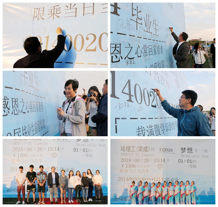 晚会开始前首先举行毕业季红毯礼,毕业生们或只身盛装出席,或好友挽手同行,或与恋人一同出场,大家一起走过红毯,走过青春的长廊,并在巨幅纪念火车票签名板上留下最恋恋不舍的一笔。期间,徐向晨院长与学院领导班子步入红毯,在签名墙上写下对毕业生们最贴心的祝福,并与毕业生们亲切合影留念。