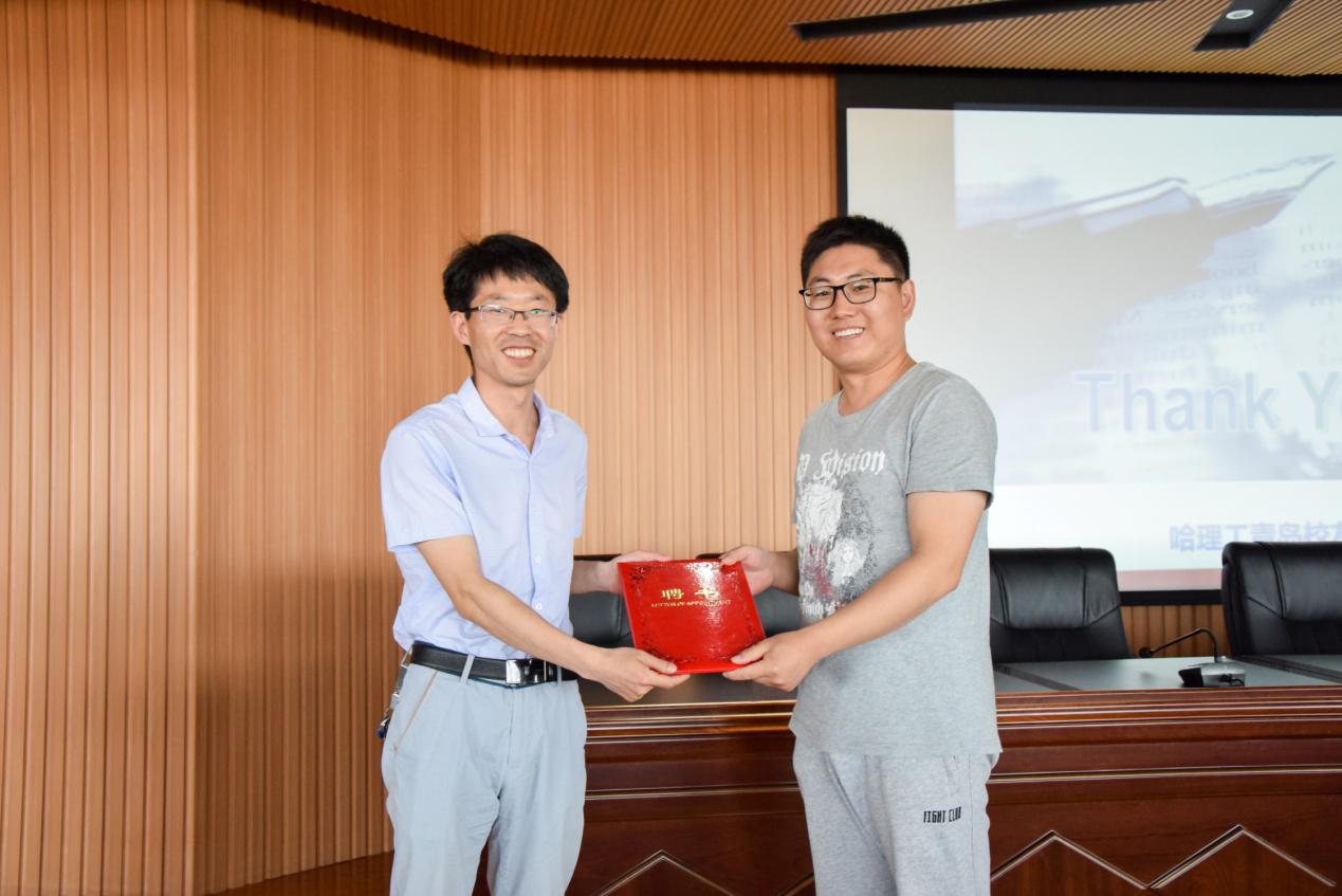 青岛校友会副会长企业管理85级校友刘书江为荣成学院代表队颁奖