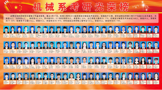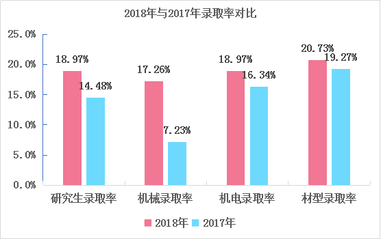 机械设计制造及其自动化168人,录取29人,录取率为17.26%;机械电子工程174人,录取33人,录取率为18.97%;材料成型及其控制工程专业164人,录取34人,录取率为20.73%。