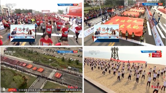 央视直播我院天旗方阵和啦啦操表演画面