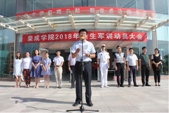 学院党委副书记兼副院长王坤发表讲话,他首先代表荣成学院对全体新生表示热烈的欢迎和诚挚的祝贺,向承担本次军训任务的91827部队官兵表示衷心的感谢。他提到,军事训练是新生入学的第一课,大学生参加军训是服兵役的特殊形式,是国防教育的有效载体,是素质教育的重要途径,对于国家和民族的发展进步有着深远的政治意义,对于自身的成长有着重要的现实意义。王副书记要求全体新生:一要以饱满的政治热情投身到军事训练中去;二要以军人的标准严格要求自己,服从命令听指挥;三要严明纪律,培养良好行为习惯。并希望广大学生通过参加军训,学会学习、学会成长、学会生活、学会交流,珍惜大学时光;加强修养,修思想、修品德,努力使自己成为德才兼备全面发展的优秀人才。