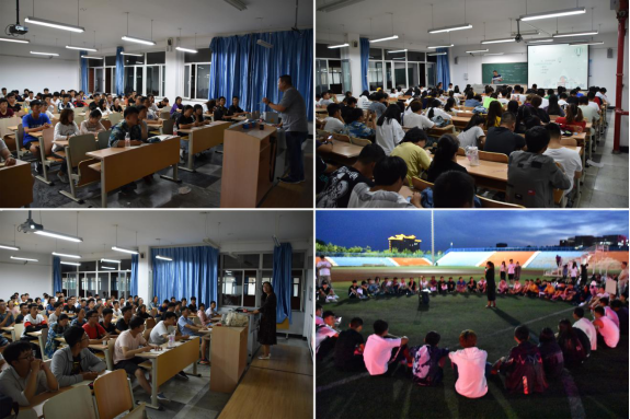 实施主题教育与专业教育相结合,开展“校院校区概况”、“理想信念教育”和“环境适应教育”的教育。9月8日下午,学校研究生部主任张凤斌在荣成学院文体中心为2018级1500余名新生进行了本科教育教学环境、学校发展现状和学业职业规划开学第一讲,围绕大学期间“为什么学,学什么,怎么学”三个方面进行了细致讲解,并热情精彩地解答了同学们提出的问题,现场掌声不断。经济与管理学院院长綦良群介绍了经济管理学科的现状和优势,重点说明了经济管理学科作为本科教育的重要学科在理工大学的地位,并向在场同学们给予了三点希望。经济与管理学院副院长王宇奇由 “人生”和“成功”两个关键词,引导同学们思考三个问题,“我是谁”、“我从哪里来”、“我要到哪里去”,叮嘱同学们应当重视培养三个能力,情商、毅力和学习适应力。9月12日晚,学院党委副书记兼副院长王坤以“荣成学院面对新时代高等学校本科教育挑战和机遇”为题,介绍了学院面对高等教育改革的挑战和学院发展现状面对的机遇,引导新生在价值观形成和确立的时期扣好人生第一粒扣子。学院谢丽娜老师、刘树云老师分别围绕大学学业生涯和职业生涯规划对新生进行了入学教育。