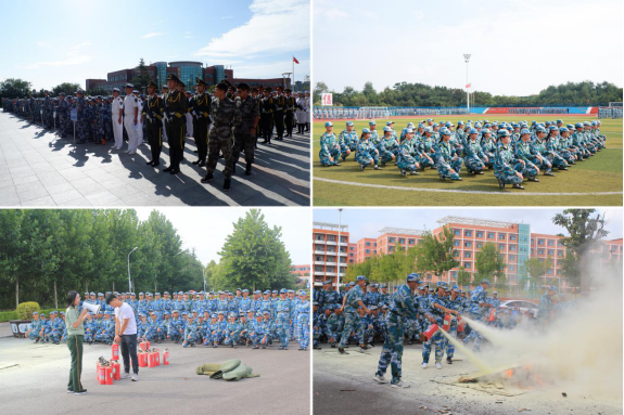 新生军训(上)、保卫办公室组织开展实地扑灭火演练(下)