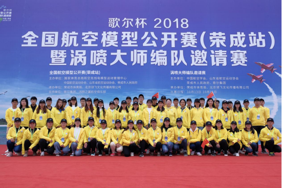 10月9日至10月15日,由国家体育总局航管中心、中国航空运动协会、山东省航空运动协会、荣成市人民政府主办,歌尔集团、鸿鹄之翼航空俱乐部全力支持,荣成市体育局、北京领飞文化传播有限公司承办的“歌尔杯”2018全国航空模型公开赛(荣成站)暨涡喷大师编队邀请赛分别在荣成市体育馆和樱花湖体育公园举办。赛事以“科技·运动·文化的融合”为主题,旨在促进科技创新,激发航空运动热情,弘扬航空文化,倡导未来新时代的生活方式,打造一场面向社会、面向国际、以涡喷航模为主的大型综合性盛会。除两大赛事以外,国际航模大师秀、“蓝天飞梦”青少年模拟飞行大赛、全国教育无人机研学邀请赛、青少年航空航海嘉年华、海鲜美食节、荣成首届滨海国际热气球文化节等活动也吸引了大量荣成以及其他省份的航空爱好者来到荣成这座海滨城市。