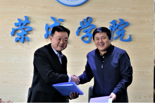 机械工程系主任王仲文代表机械工程系和荣成康派斯新能源车辆股份有限公司行政人事部部长刘春文签署“康派斯房车双创实验室共建协议”。