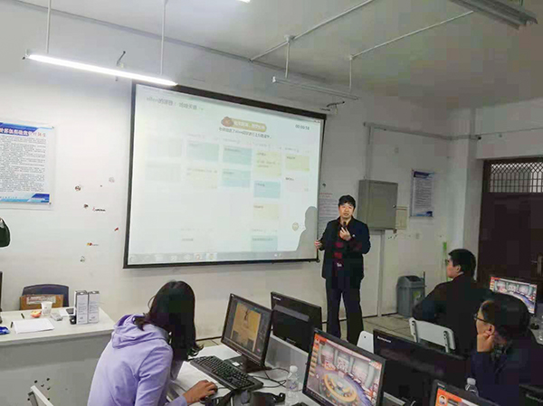 上午课程围绕《创业基础》示范教学展开,肖老师首先介绍了《基于实践的创业教育课程体系》的整体设计、教学目标和教学内容,并分别从《商业模式设计》、《认知创业》两个课程单元展开示范教学。《商业模式设计》是使用计算机软件学习和构建完整商业模式的实训课程,该课程以小组形式进行,教师完成理论和案例教学后,学生使用“商业模式画布”等工具对软件给定或自身构思的创新创业项目商业模式进行分析、设计和构建,各小组完成后进行项目路演,过程中学生与学生、学生与教师之间充分互动,头脑风暴,相互激发,结合改善。通过师生共同验证项目可行性、制定项目执行方案、刻画梳理商业模式画布等途径实现教学目标;《认知创业》课程以一个交互式3D模拟游戏模块为课程平台,该课程单元首先通过体验式教学激发学生学习兴趣,让学生在发现机会(创新)、整合资源(创业)、实现价值(创造)的实训过程理解创新创业创造的本质和内在联系。体验结束后,学生和教师分别进行总结并由教师渗透讲解部分理论知识,激发学生课后结合项目和问题进行扩展阅读和自主学习,从而实现教学目标。上午课程结束后,肖老师还与参会教师交流了教学引导、实训方法、教师点评、头脑风暴、翻转课堂等方法和授课技巧。