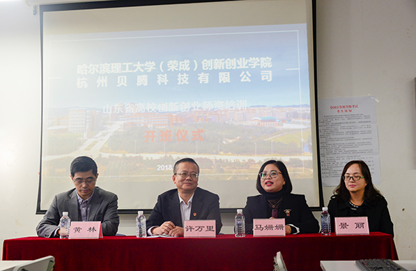 11月3日,由杭州贝腾科技和荣成校区联合主办的贝腾科技山东省高校创新创业教育实践教学师资培训班在荣成校区开班。来自哈尔滨工业大学(威海)、山东大学(威海)、烟台大学和哈理工荣成校区等6所高校的58名院系领导、教师参加了此次培训。贝腾科技董事长黄林、荣成校区创新创业学院执行院长许万里等出席开班仪式并致辞。