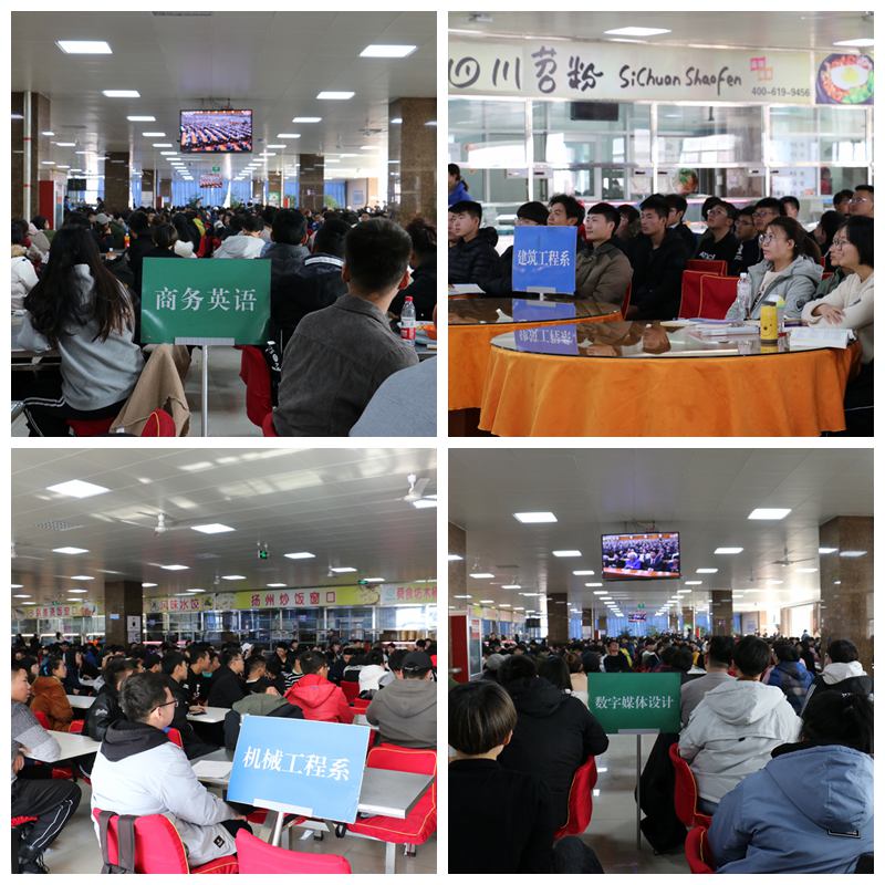 学院领导在食堂与学生共同收看改革开放40周年直播