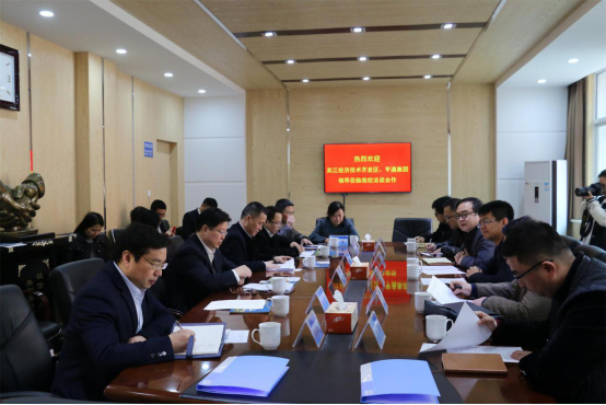 会议期间,徐向晨院长对查旭东主任一行的到来表示热烈欢迎,并介绍了学院发展概况以及学院与吴江经济技术开发区、亨通集团的多年友好合作历程。徐向晨院长表示,此次查旭东主任、杨骏总监一行的到访,进一步推动了政校企三方的深入合作,开创了学院人才培养、毕业生就业工作的新局面;学院将积极调动相关部门,共同配合,确保合作项目及时落地。查旭东主任对学院领导的热情接待表示了感谢,并介绍了吴江经济技术开发区的发展概况及下一步发展规划;华磊局长介绍了吴江经济技术开发区有关人才引进、校企合作方面的优惠政策;杨骏总监对学院毕业生在亨通集团的工作表现进行了表扬,充分肯定了学院的人才培养质量,并介绍了亨通集团发展概况及集团的校企合作工作规划。