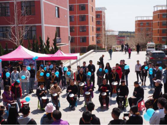 活动邀请到由自闭症孩子与家长组建的非洲鼓演奏队——“荣成市社工爱心联盟蓝星空乐队”来校演出,孩子们动情的音乐引来很多学生驻足围观,他们也参与到活动中,陪伴着孩子们到演出的最后,伴随着音乐,学生们在留言板上留言,给予孩子们最美好纯洁的祝福,为他们点亮蓝色星空,守护内心的星海。