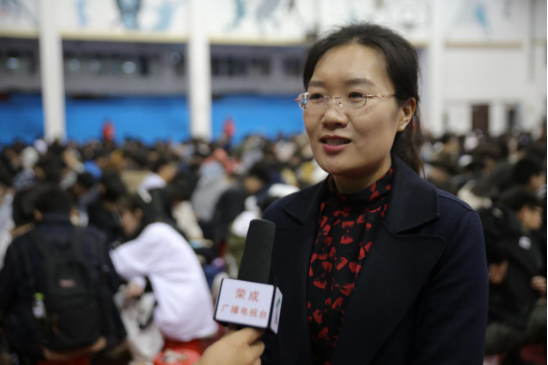 会后荣成团市委副书记林茂蓉在现场接受荣成市电视台采访
